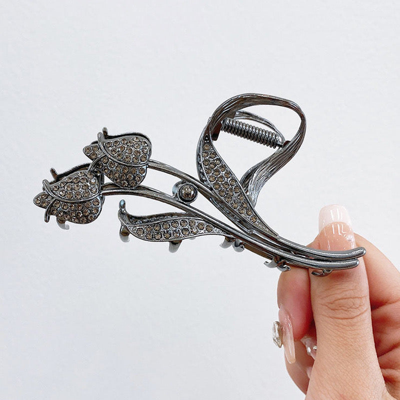 AC72 pinza para el cabello tulipanes grises acrílico 10cm