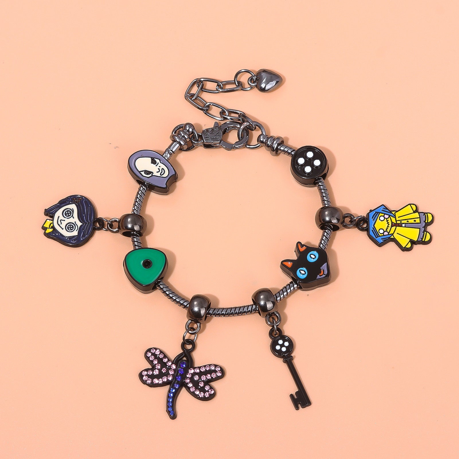 B323 Pulsera tipo Pandora coraline incluye dijes 23cm dijes 3cm aleacion