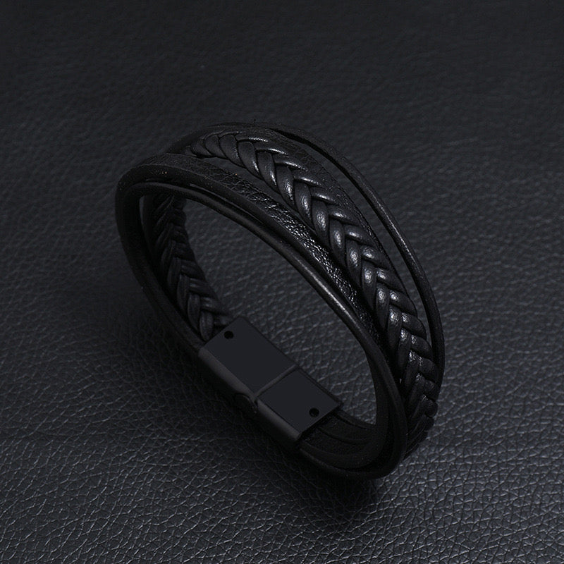 B333 Pulsera caballero cuero sintetico 21cm broche