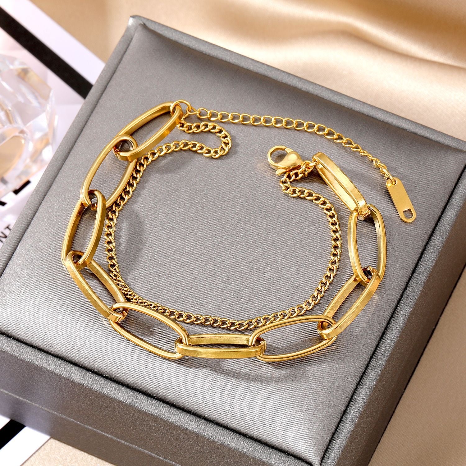 B405 Pulsera cadena dorada acero inoxidable chapada en oro de 18k 20cm