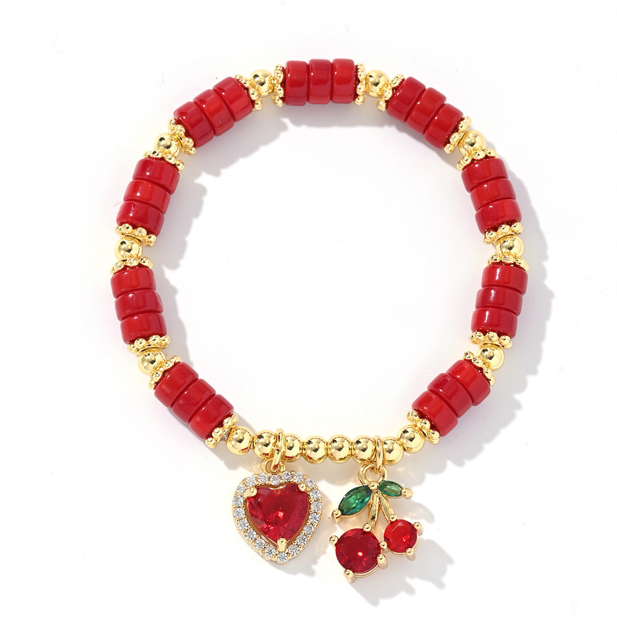 B427 Pulsera cuencas cereza roja cobre caja paso en oro de 18k elástica