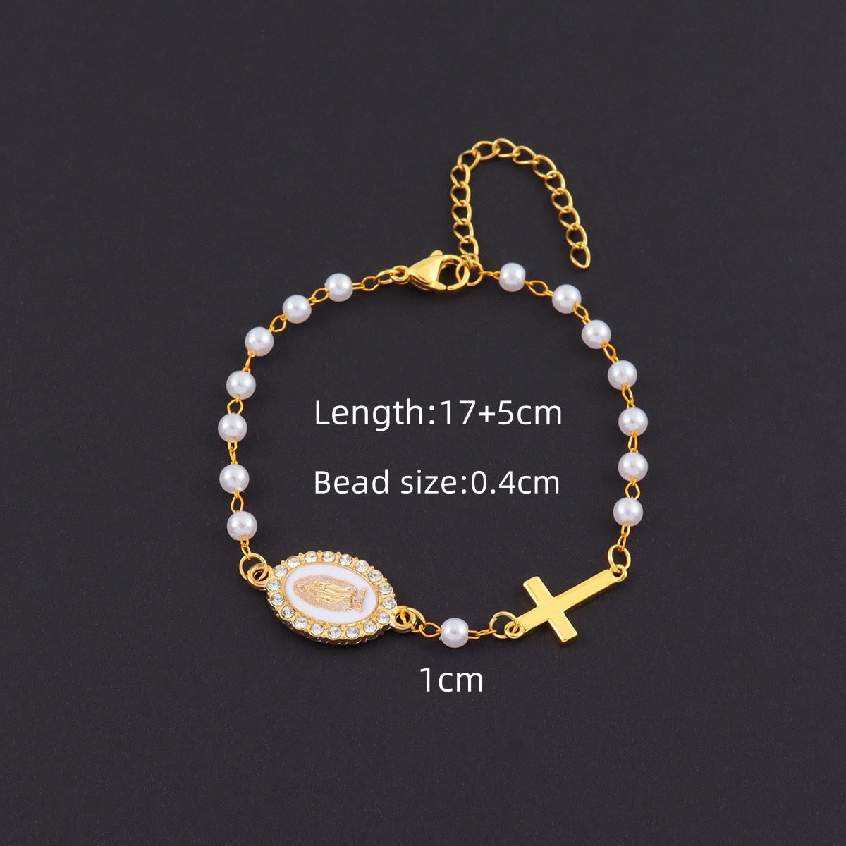 B490 Pulseea perlas virgen cruz cobre 20cm