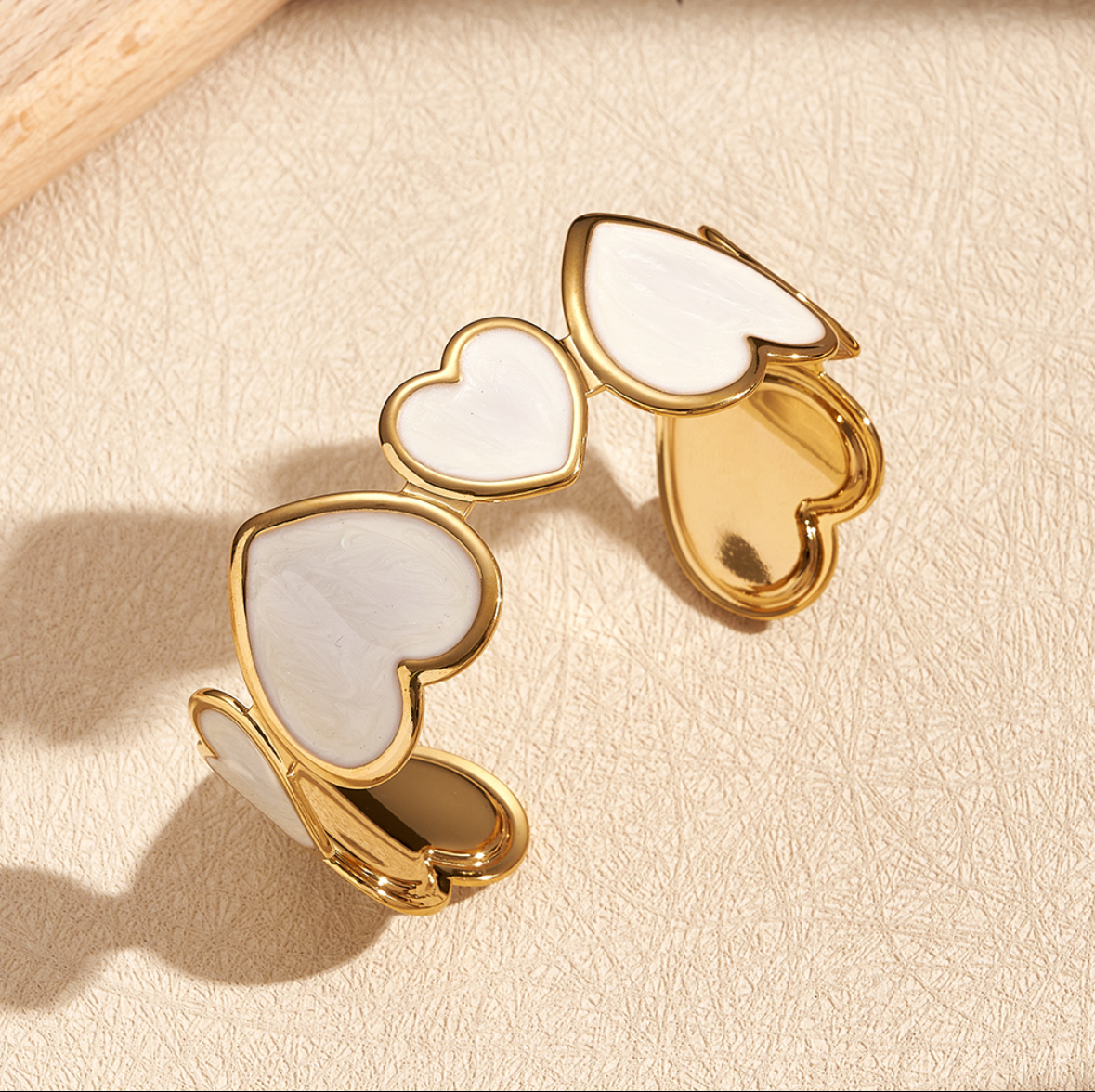B598 Brazalete corazones blancos acero inoxidable abierto