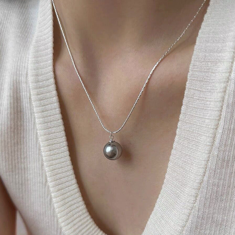 C1004  collares, esfera plateada, cero de titanio, 22 cm de largo 1 cm dije