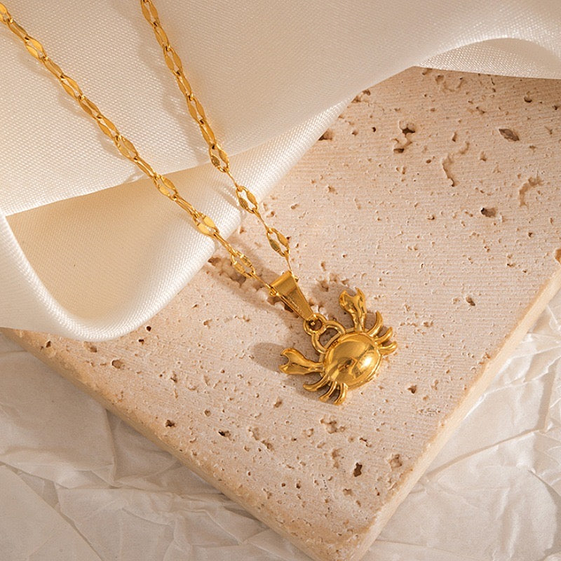 C1005 collar, cangrejo dorado, Acero Inoxidable, 24 cm de largo 1 cm dije