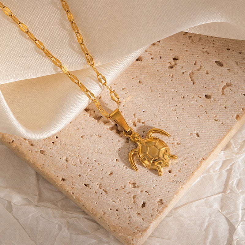 C1006 collar, tortuga dorada, Acero Inoxidable 21 cm largo 1 cm dije