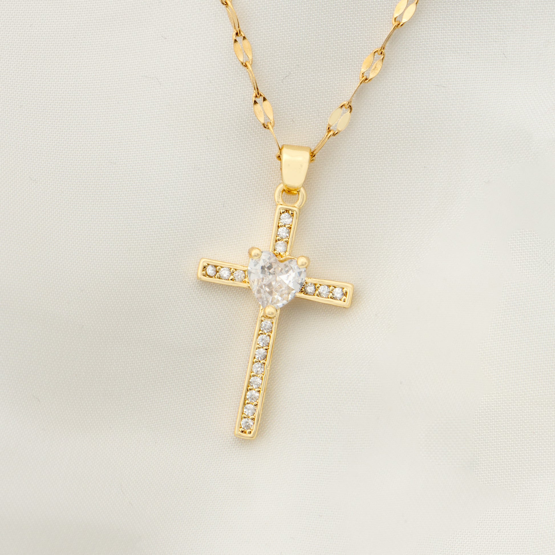 C1049 collar cruz brillante acero inoxidable 21cm largo 3cm dije