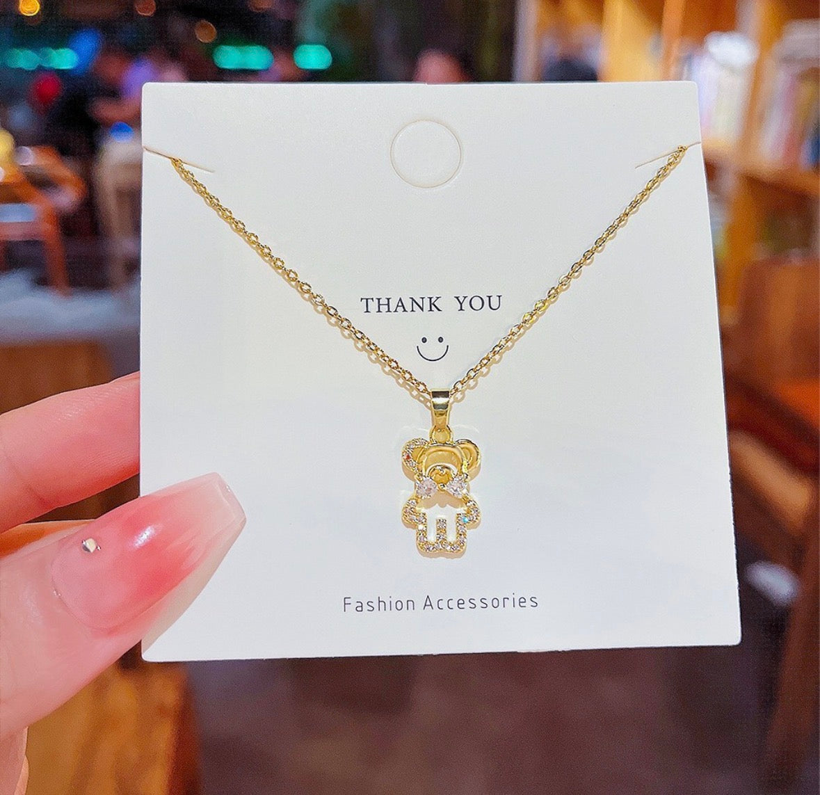 C1158 collar oso dorado acero inoxidable 21cm largo 2cm dije