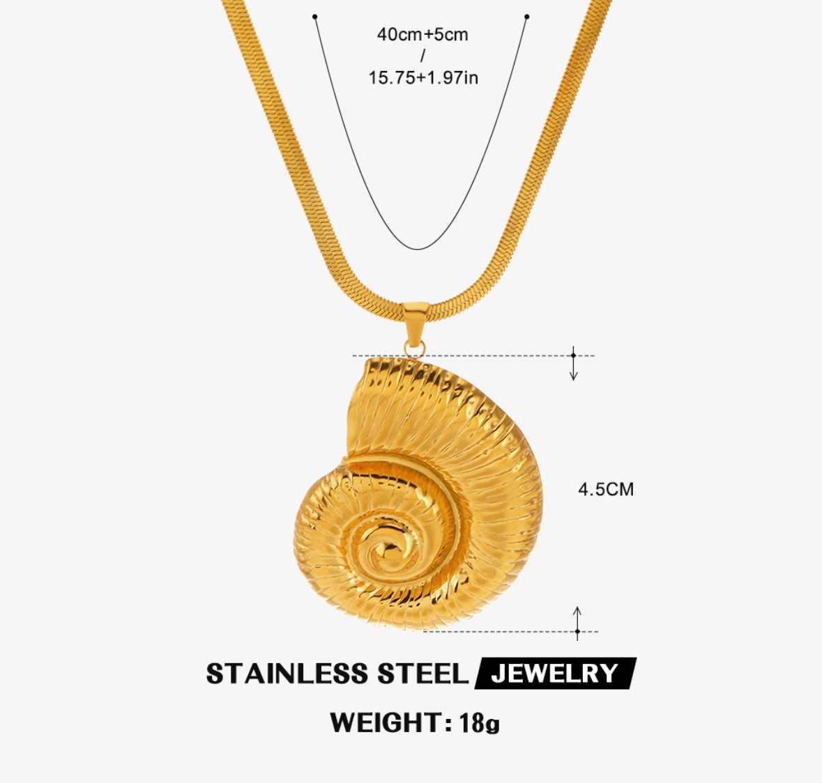 C1248 Collar caracol de mar dorado acero inoxidable dije 5cm