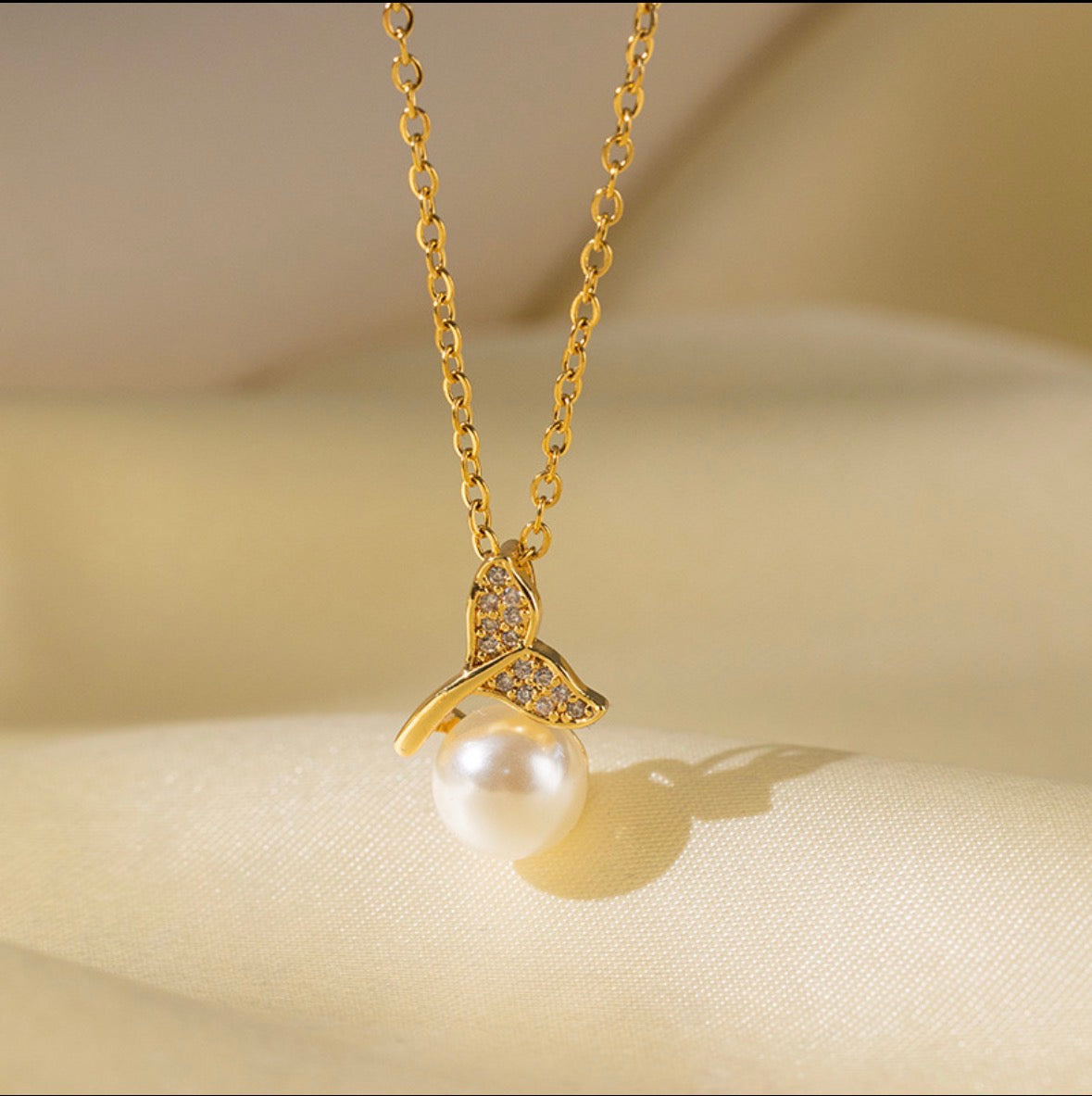 C1267 Collar cola de sirena dorada perla acero de titanio