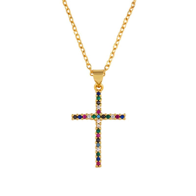 C504 Collar Cruz zirconia cobre largo 26cm dije 3cm