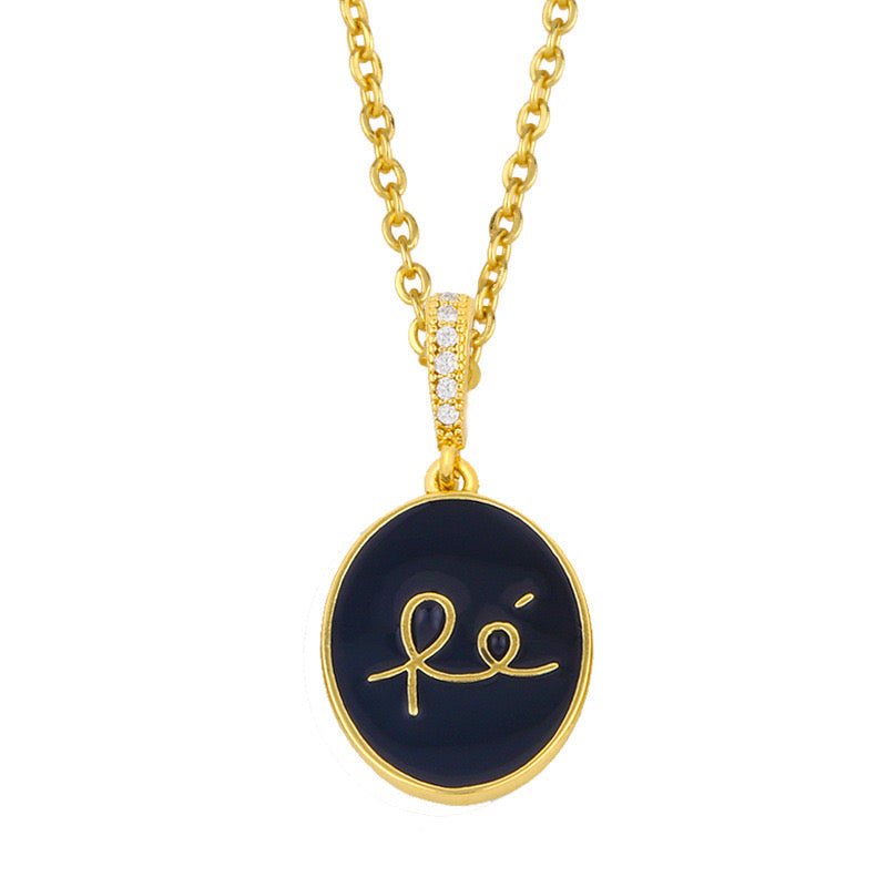 C622 Collar dorado circulo negro fe cobre largo 22cm dije 2cm