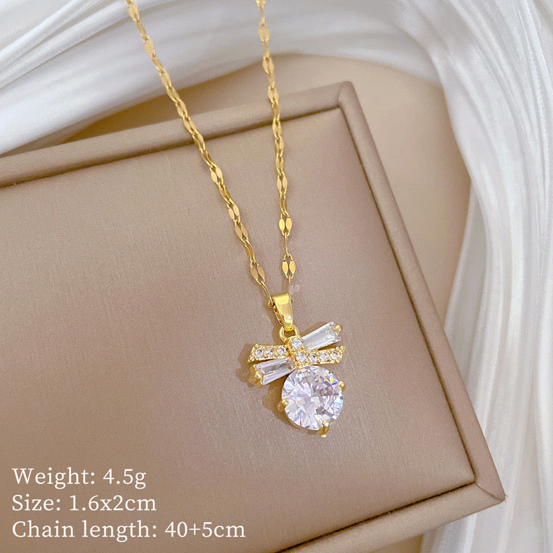 C646 Collar brillante moño circulo cristal acero de titanio dije cobre largo 22.2cm