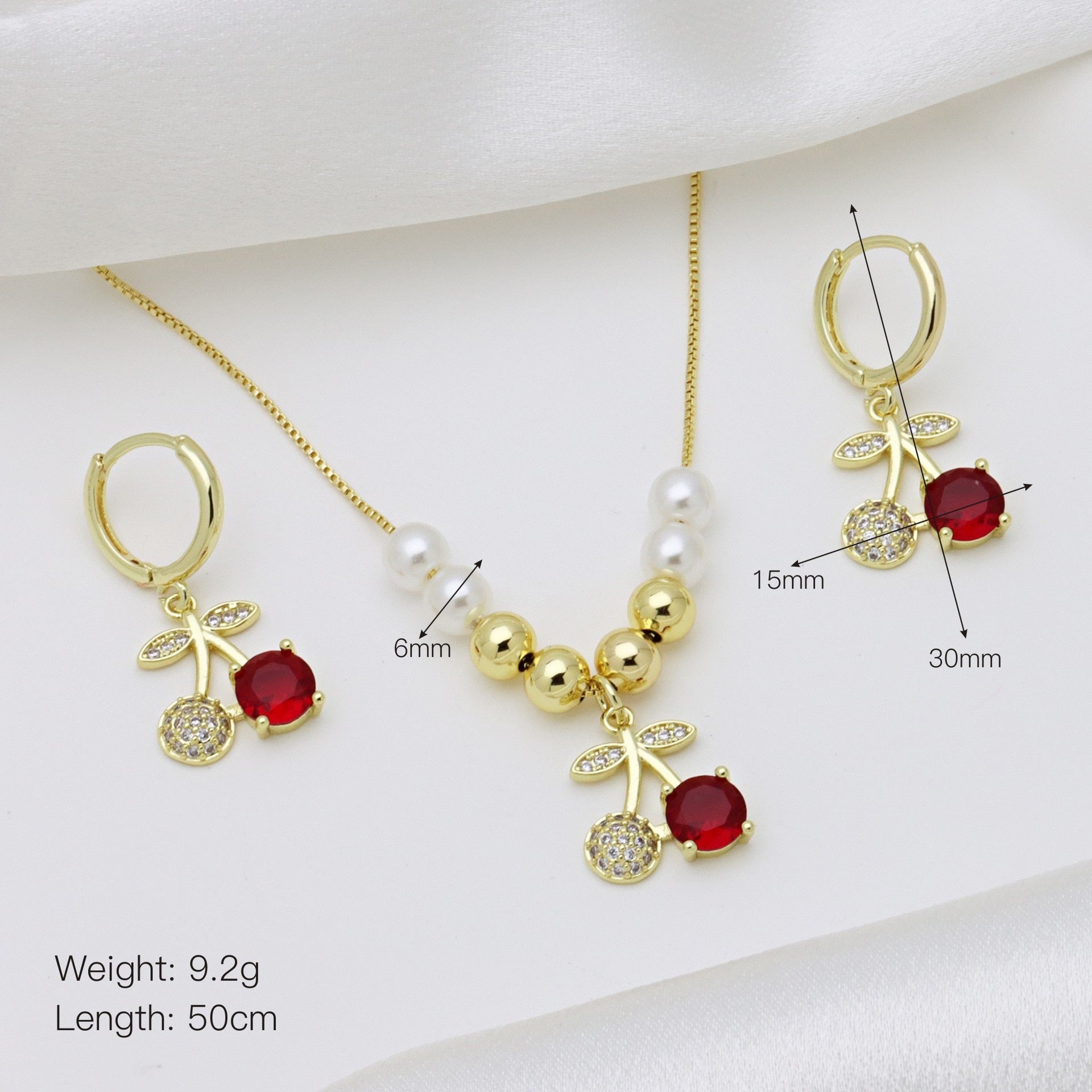 C751 Conjunto de collar y aretes cobre incrustación 22cm largo 2cm dije