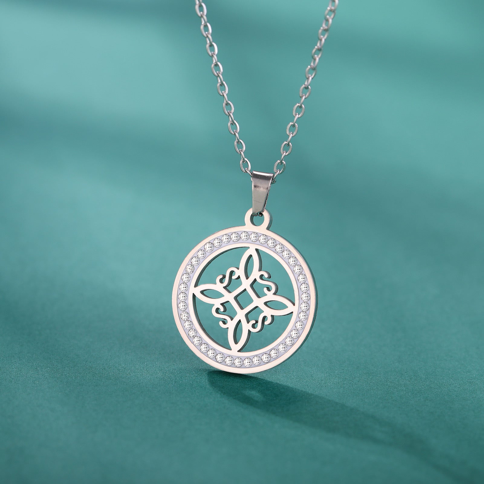 C863 Collar círculo plateado acero inoxidable 21cm largo 3cm dije