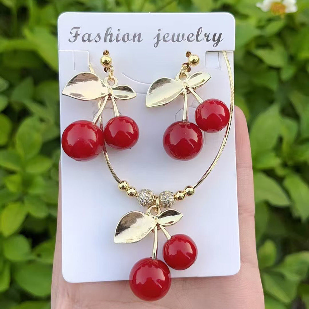 C867 Conjunto de collar aretes cerezas cobre de 18k 22cm de largo 4cm dije y 4.5cm aretes