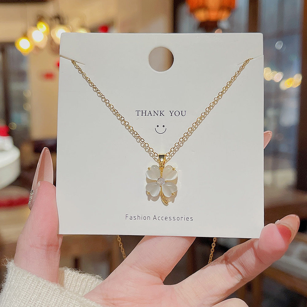 C875 Collar trébol acero titanio 21cm largo 2cm dije