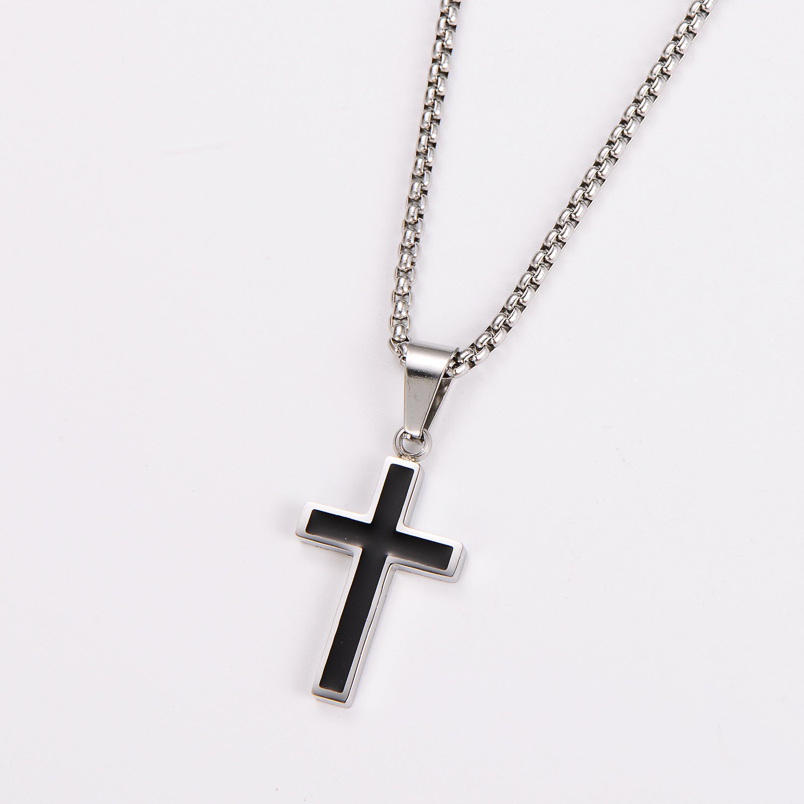 C883 collar cruz plateada acero inoxidable 33cm largo 5cm dije