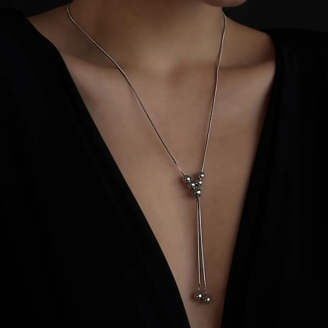 C976 Collar esferas plateadas acero inoxidable chapado en oro de 18k 25cm