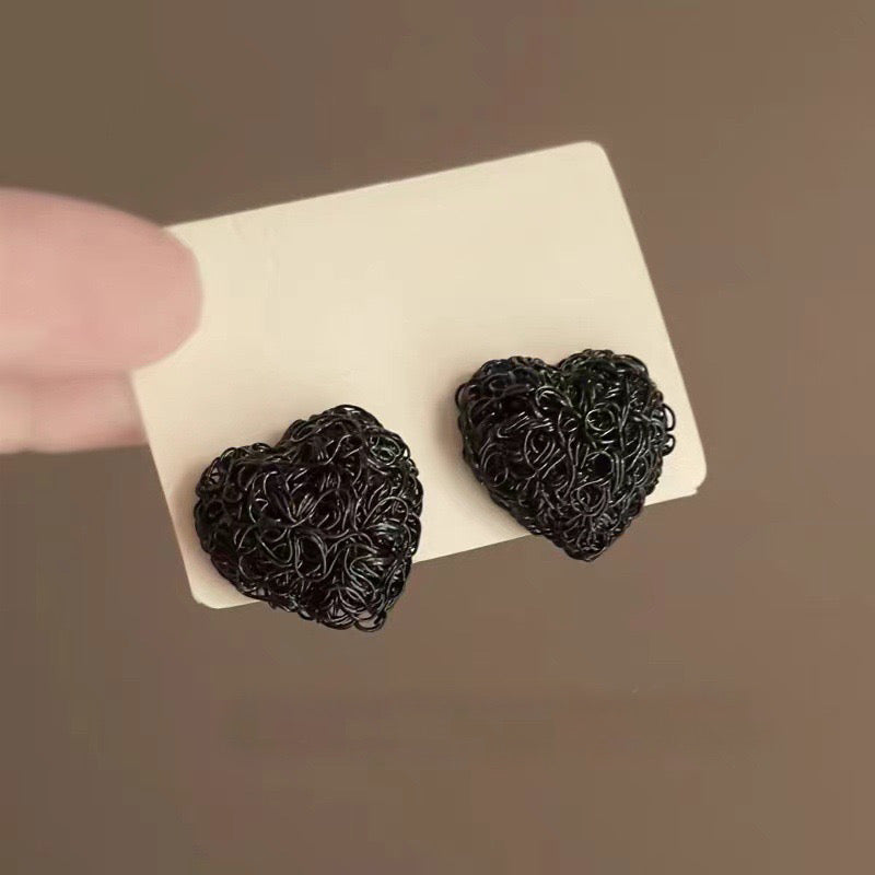 E2815 Aretes corazones negro aleacion esmaltado 2cm