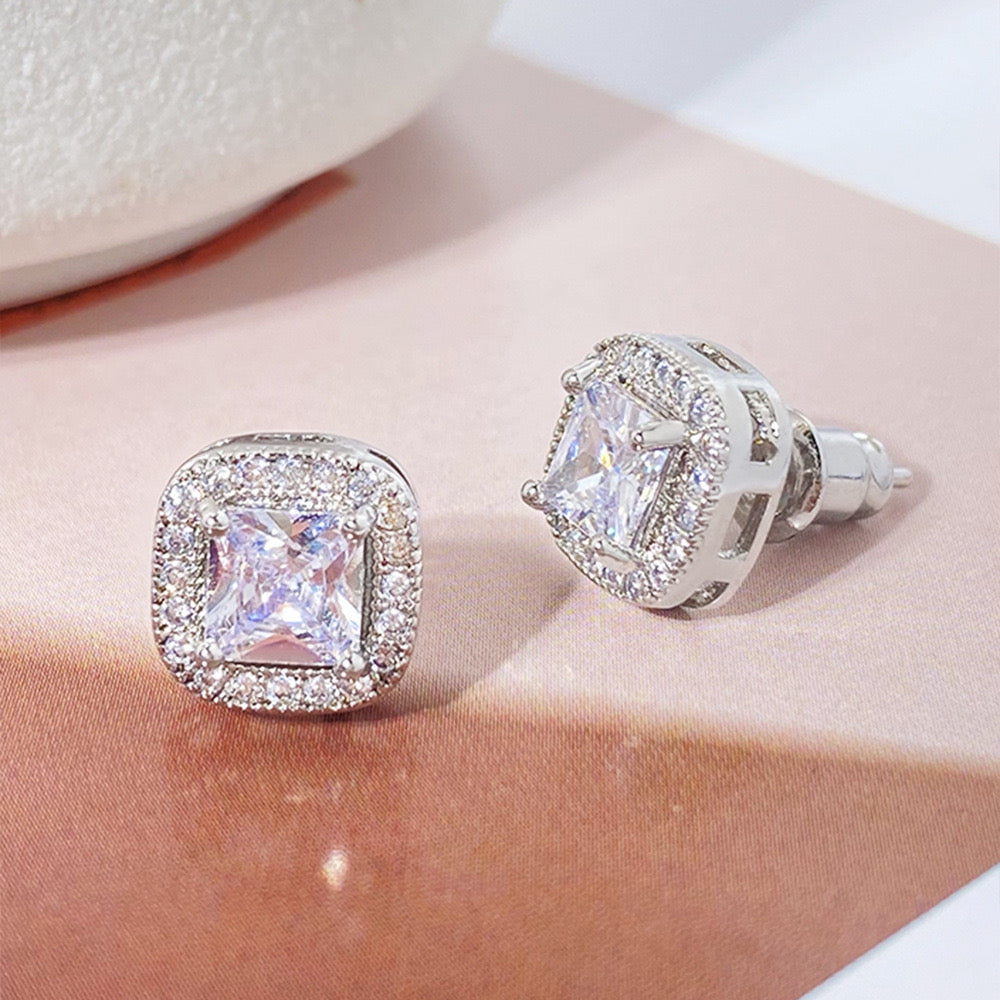 E2938P Aretes cristal cobre chapado en oro 18k 1cm