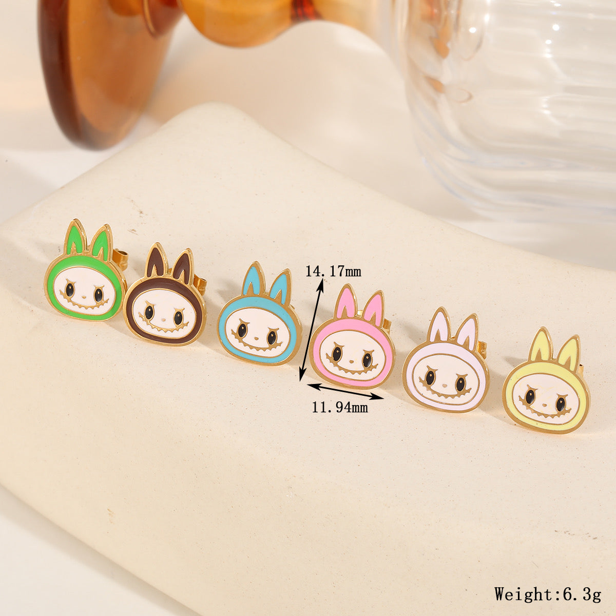 E3205 Conjunto de aretes labubu acero inoxidable chapado en oro 18k 1.5cm