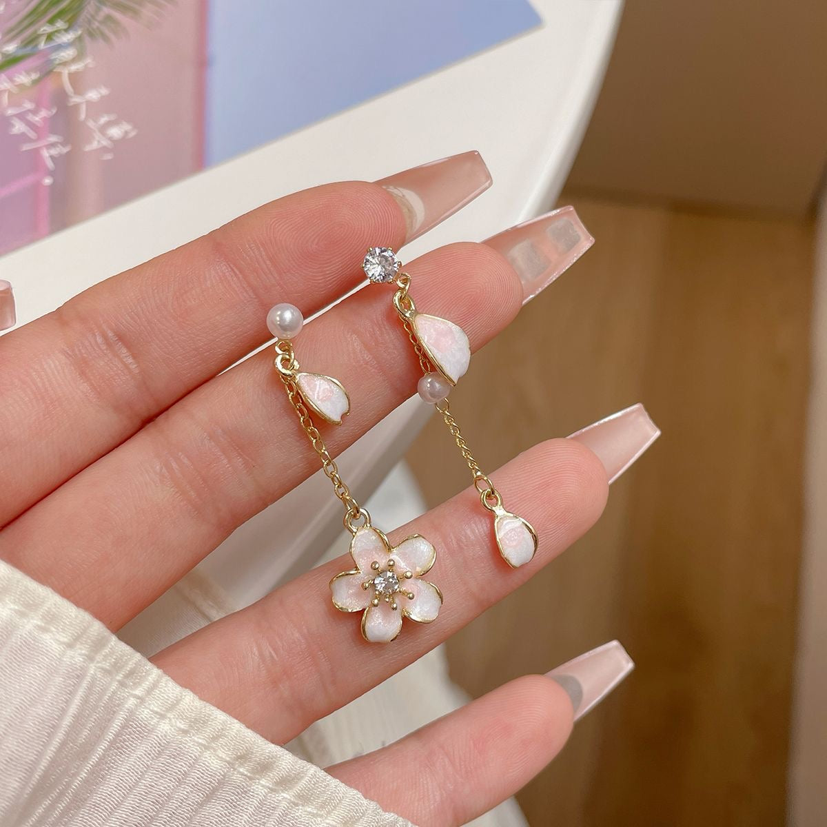 E3278 Aretes flor esmalte aleacion asimetricos 3cm