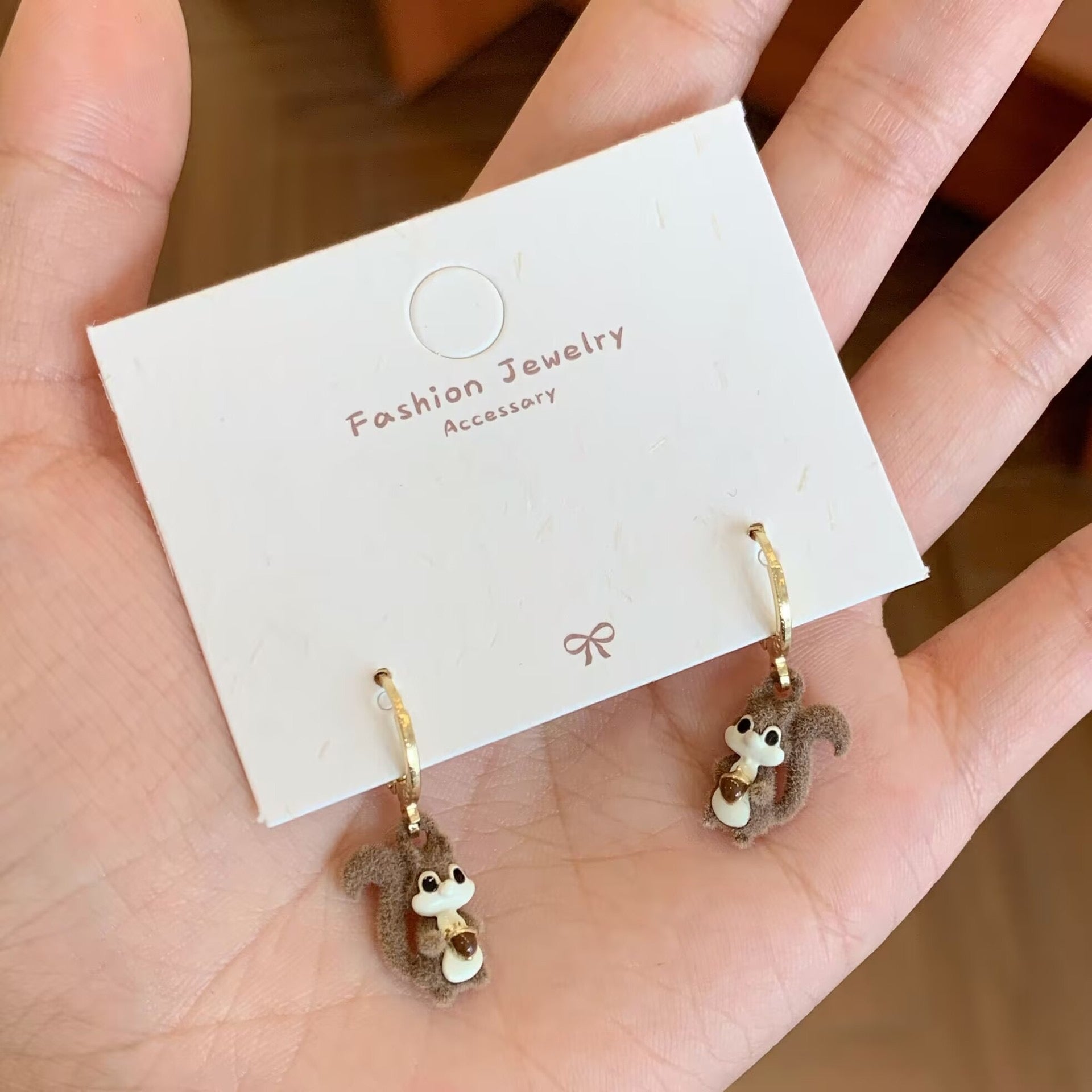 E3296 Aretes ardilla argolla textura flocada 3cm