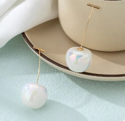 E3367 Aretes cereza blanca colgante resina aleacion 6cm