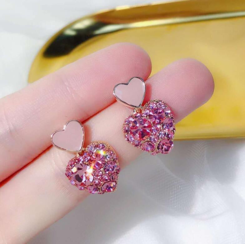 E3440 Aretes corazon rosa aleacion 2.5cm
