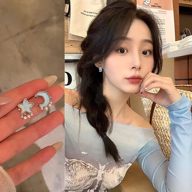 E3789 Aretes estrella luna poste de plata 1.5cm
