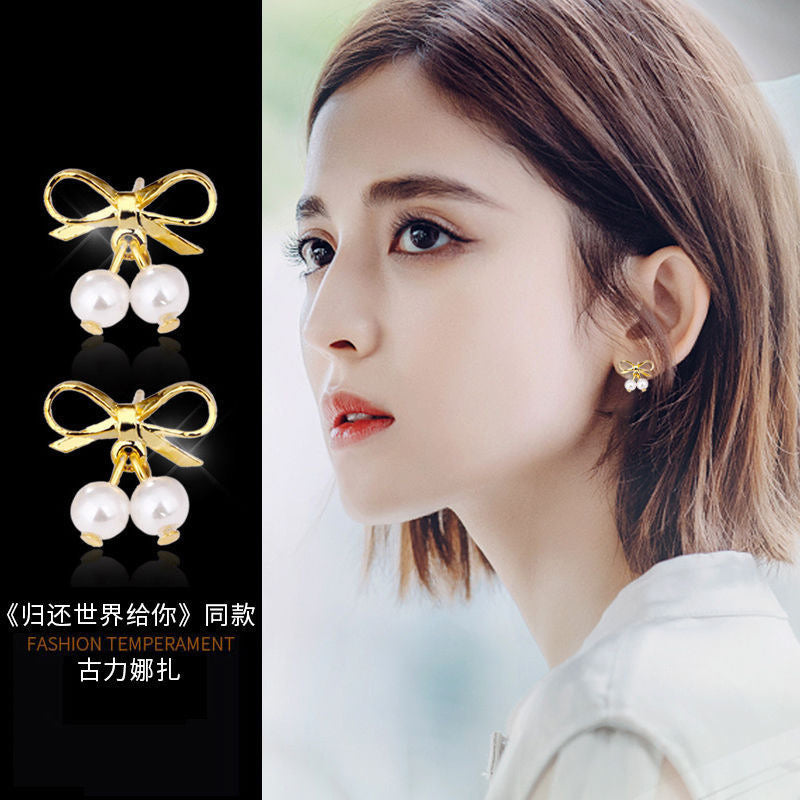 E3875 Aretes moño dorado poste de plata 1.5cm