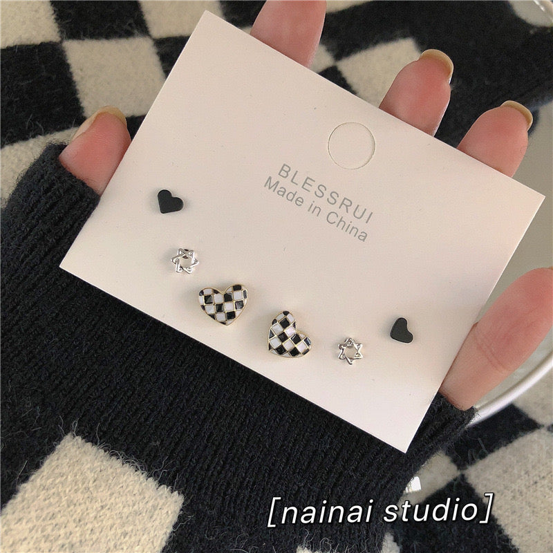 E3888 conjunto de aretes corazón poste de plata 1cm