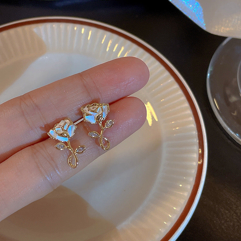 E3930 Aretes rosa blanca aleacion 1.5cm