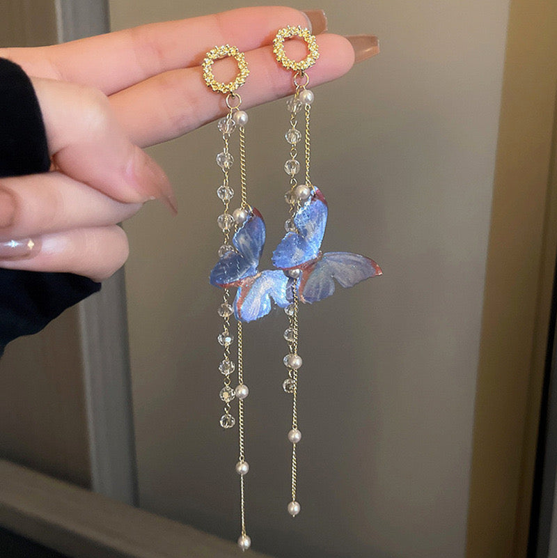 E3947 Aretes mariposa azul aleacion resina 8cm