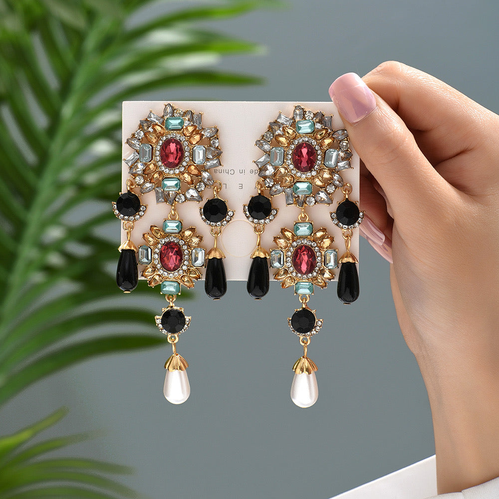 E3967 Aretes flor estilo vintage aleacion zirconia 6.5cm