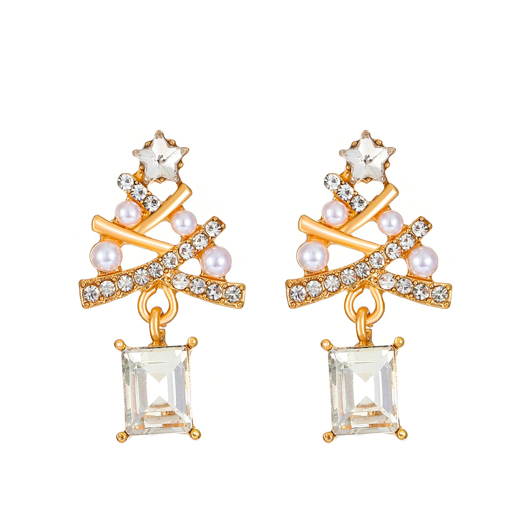 E4140 Aretes árbol de Navidad brillante aleacion 3.2cm
