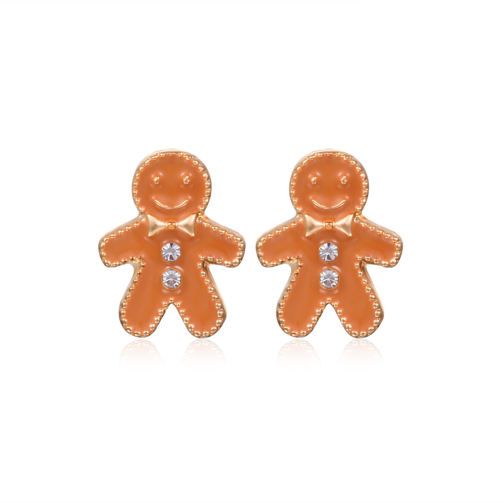 E4284 Aretes galleta hombre de jengibre aleacion esmaltado 1cm