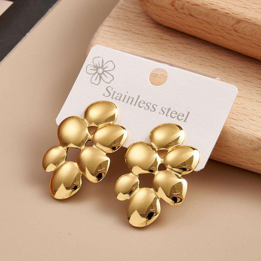 E4300 Aretes flor dorada acero inoxidable 3.5cm