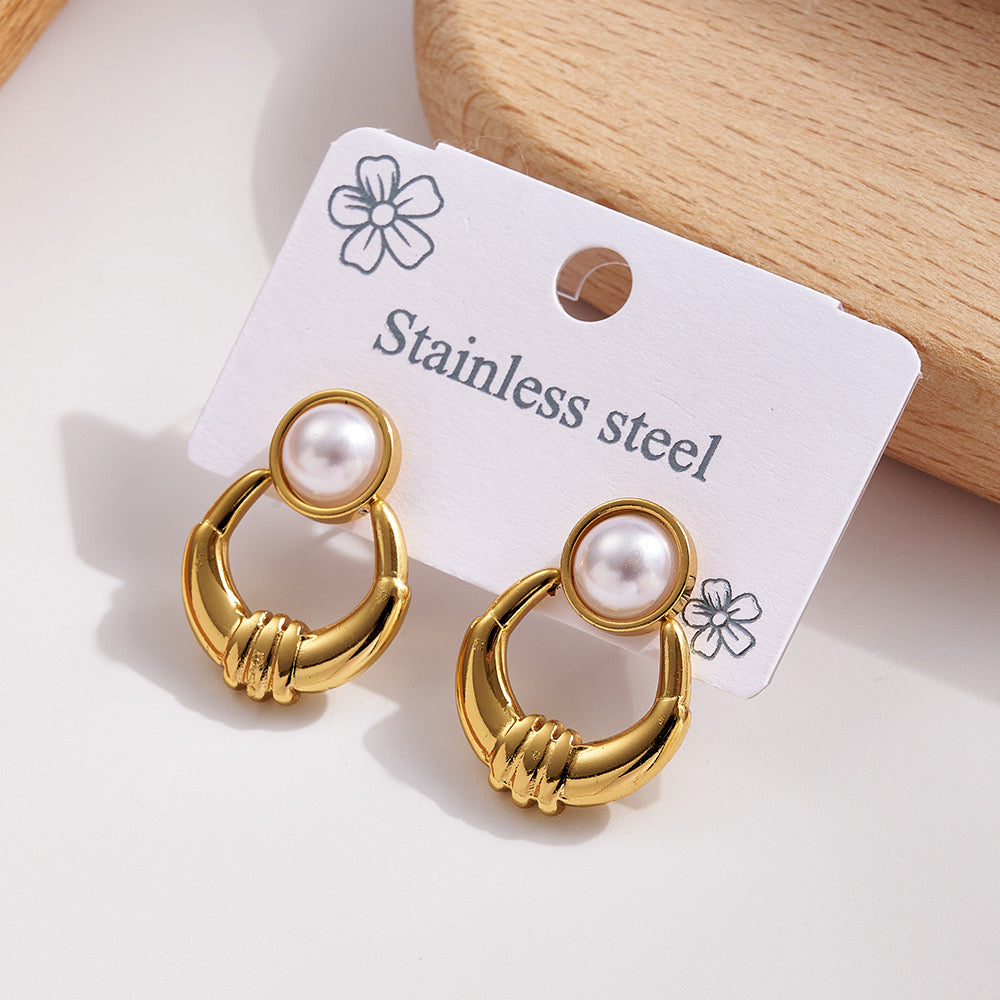 E4339 Aretes aro perla acero inoxidable 2.5cm