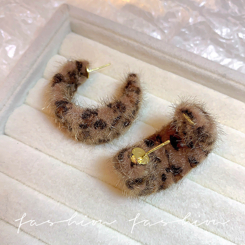 E4387 arracada leopardo felpa poste de plata 4.5cm