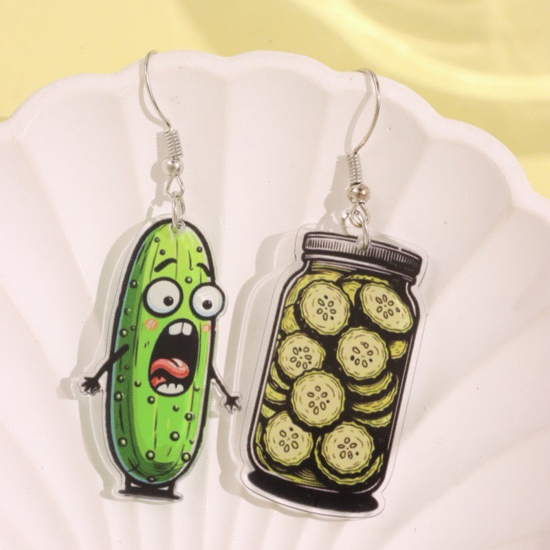 E4501 Aretes divertidos asimétricos Pepino resina 4cm