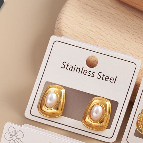E4744 Aretes cuadro perla dorado acero inoxidable 1.5cm