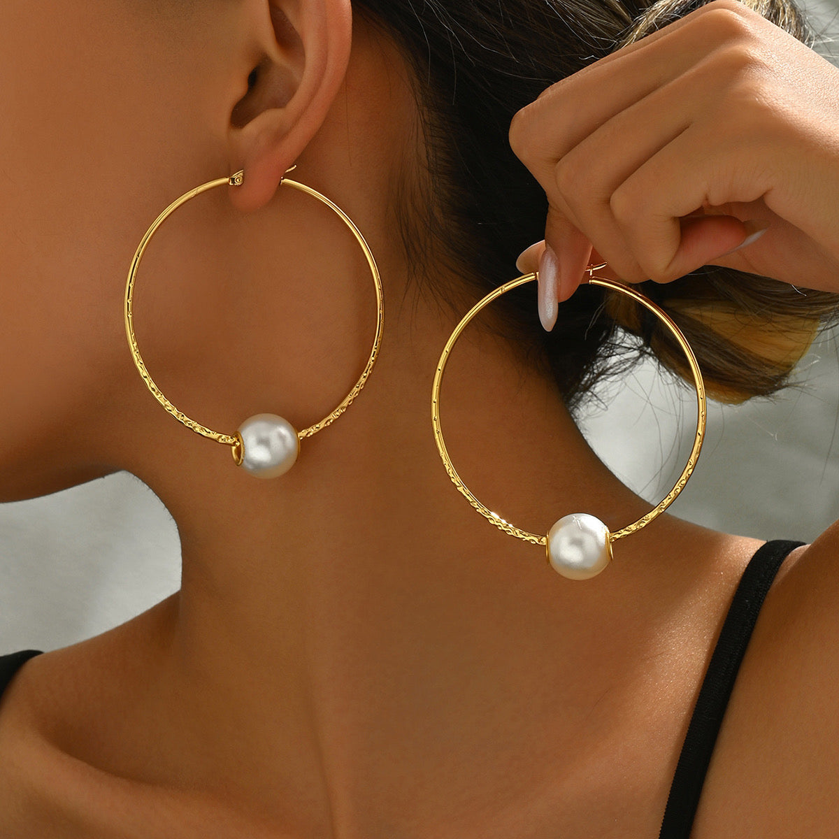 E5038 Arracadas doradas perlas acero inoxidable 7cm