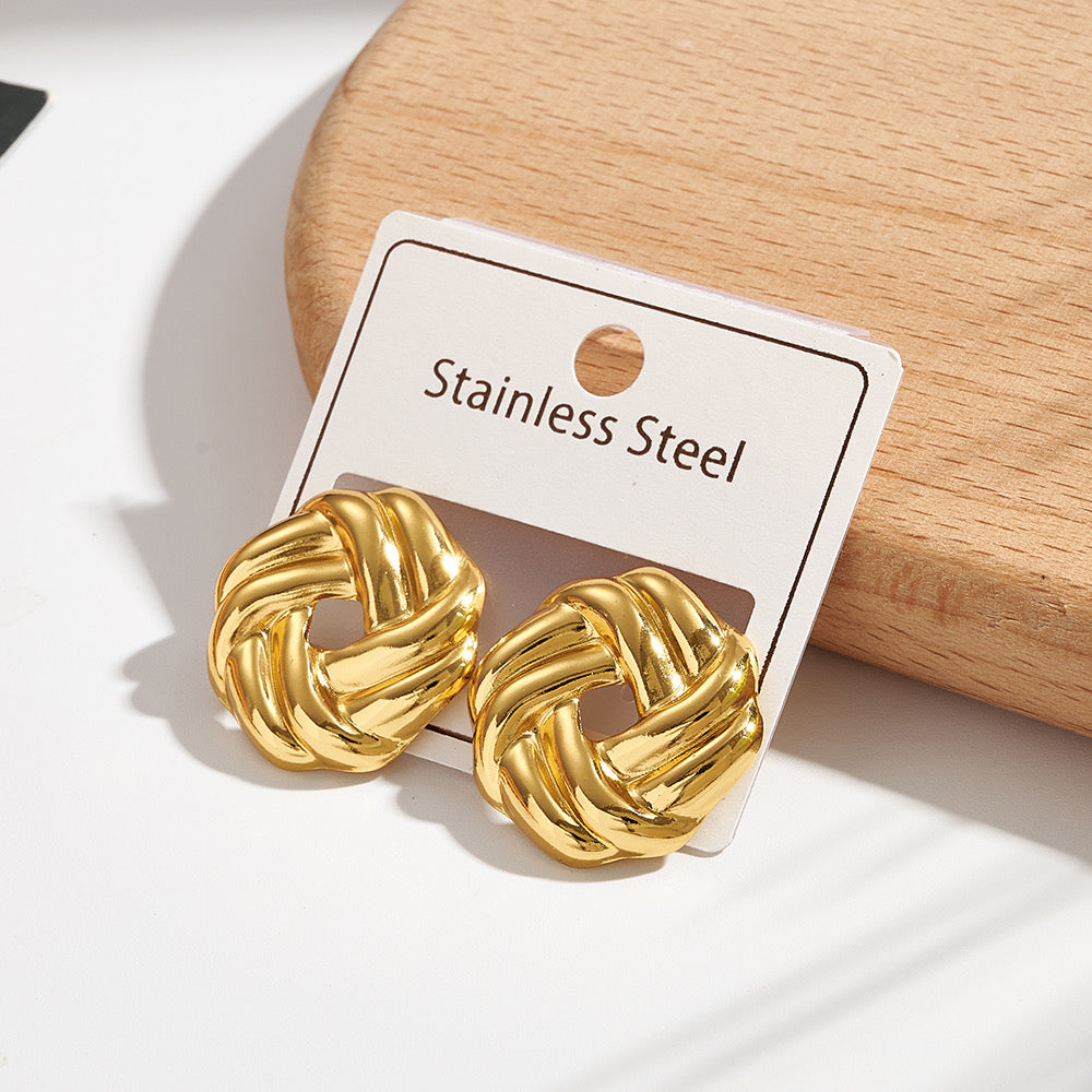 E5061 Aretes circular dorado abstracto acero inoxidable 3cm