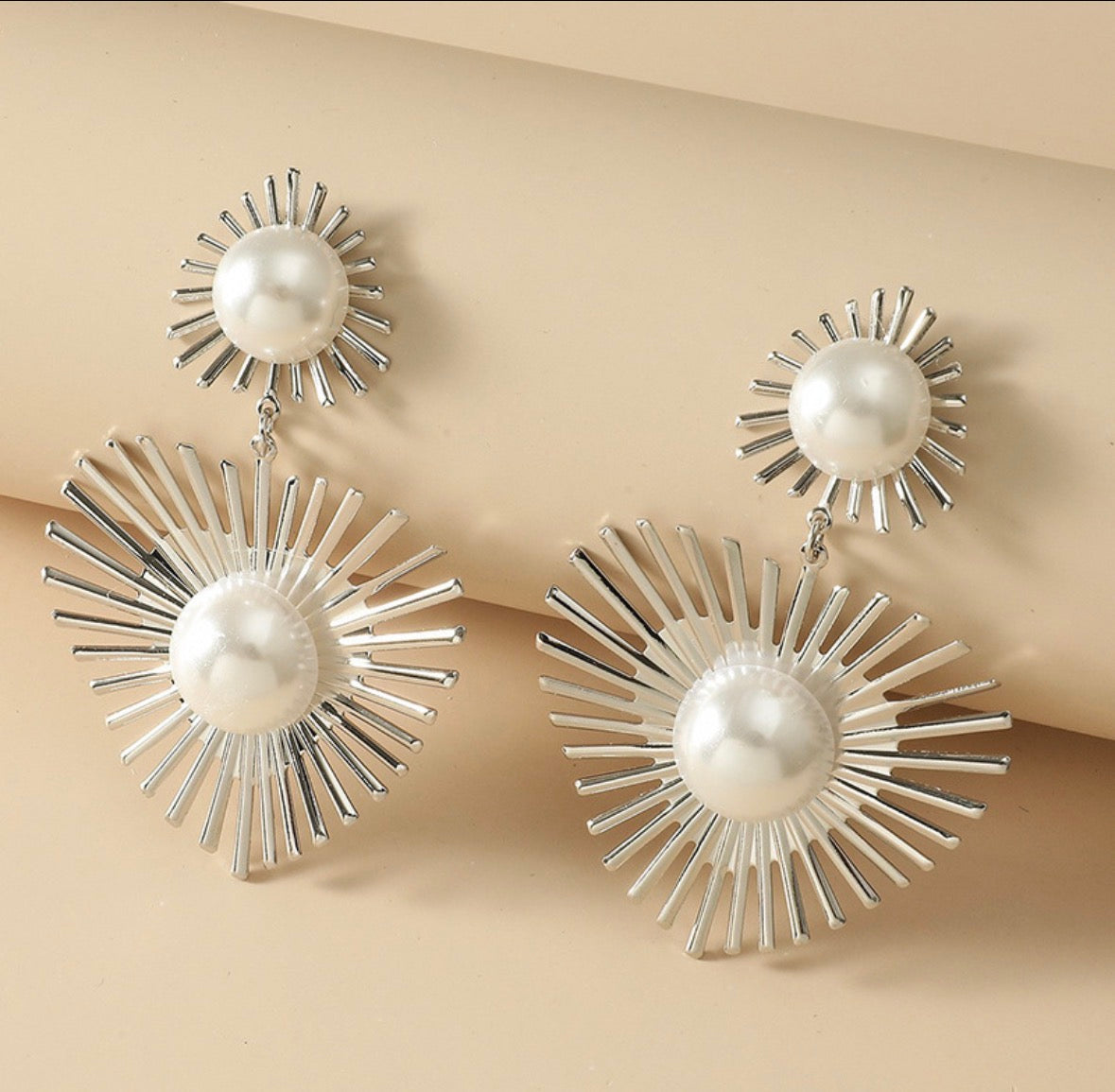 E5117 Aretes picos plateados perlas aleacion