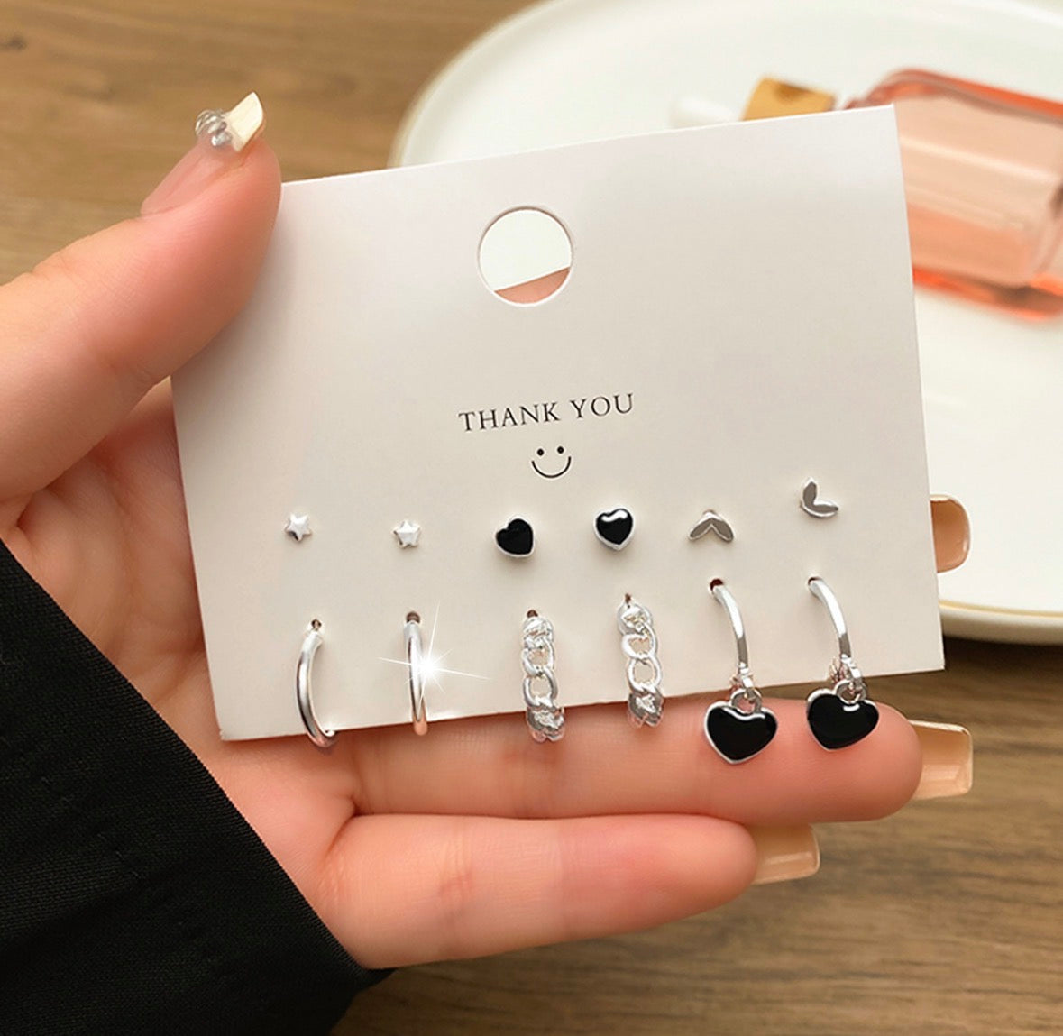 E5123 Conjunto de aretes plateados perlas aleacion 2cm