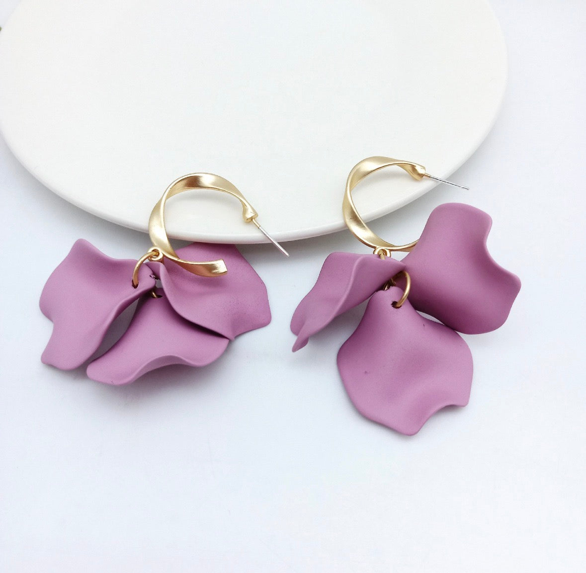 E5174 Aretes pétalos verdes colgantes barnizados 6cm