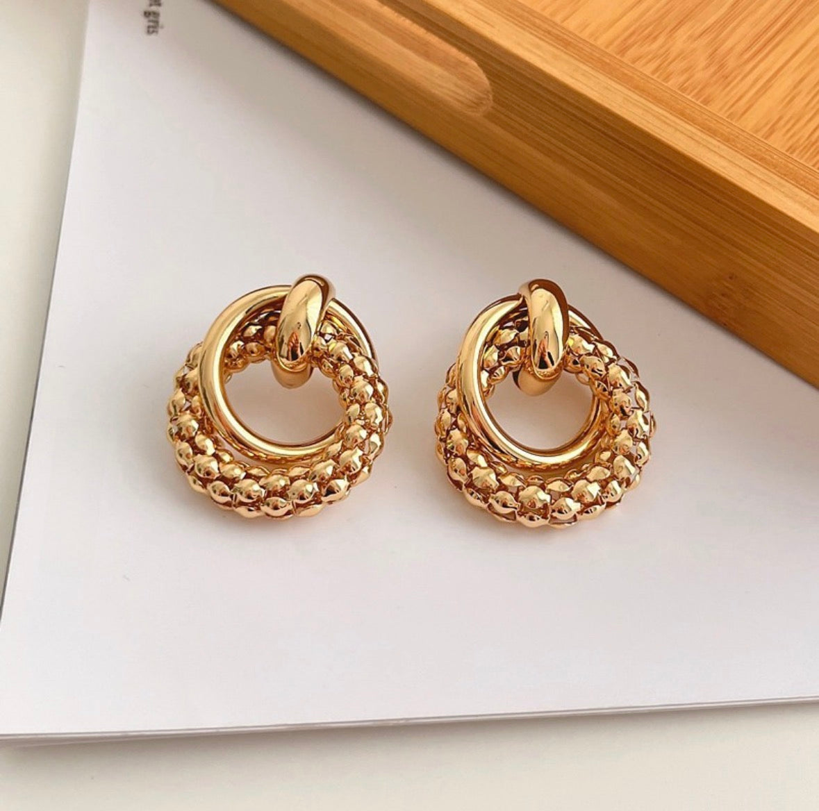 E5446 Aretes circulares abstractos dorados aleacion 4cm
