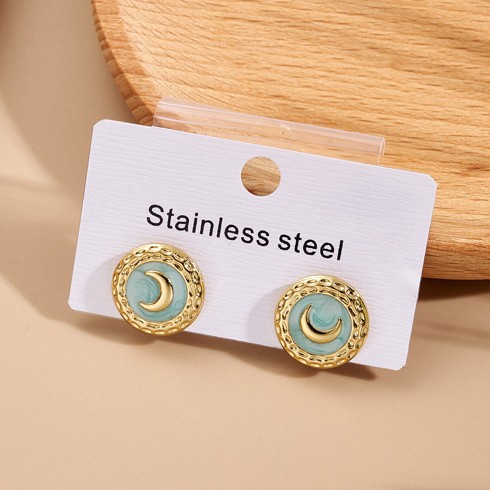 J607 Aretes círculo luna acero inoxidable 1.5cm
